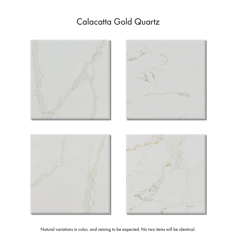 Calacatta Gold Quartz Countertop: Includes undermount sinks for classic luxury.