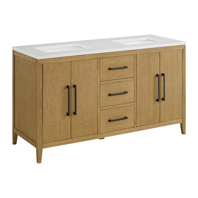 Bergen 60" Double Bathroom Vanity in Wire Brushed Oak | White Statuario Quartz Countertop