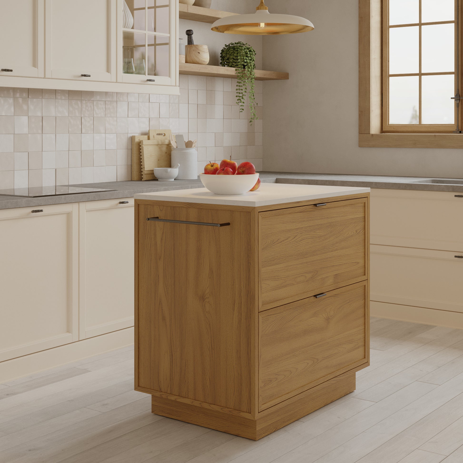 Brookline 36" Kitchen Island in Oak | White Quartz Countertop