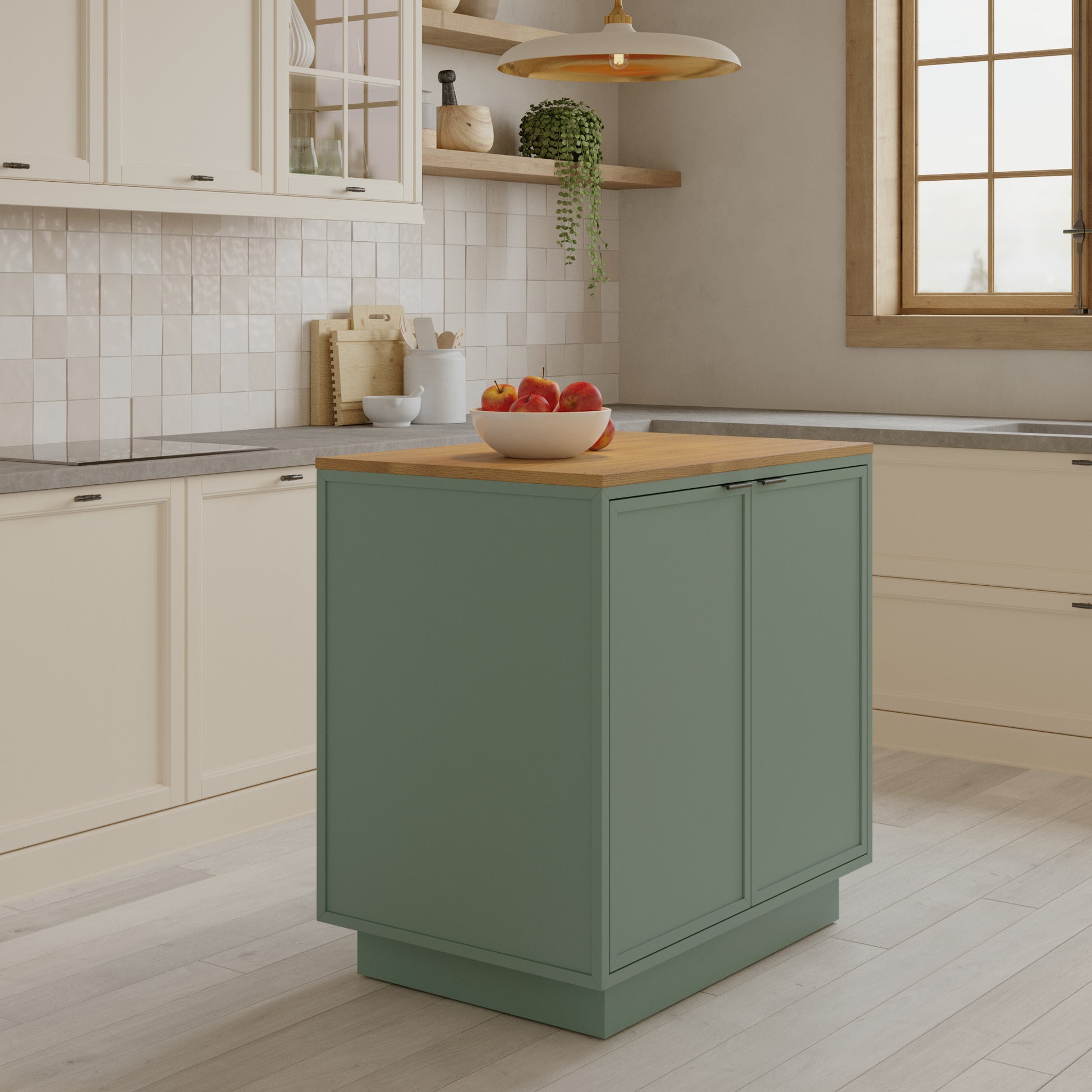 Brookline 36" Kitchen Island in Organic Green | Butcher Block Countertop