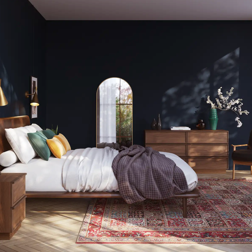 This beautiful Mid-Century Modern dresser is a perfect blend of style and functionality. Crafted from a solid wood frame construction and walnut solid wood trim and veneer, this elegant piece brings a touch of timeless sophistication to your bedroom. Designed with clean lines and a minimalist aesthetic, it effortlessly compliments any décor while providing ample storage. Comes fully assembled.