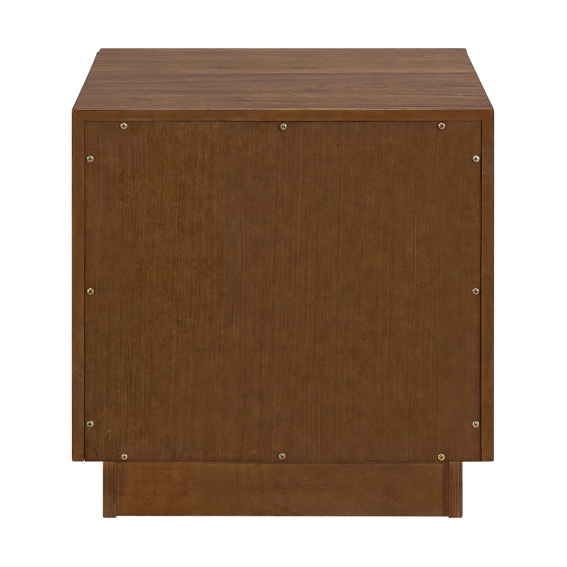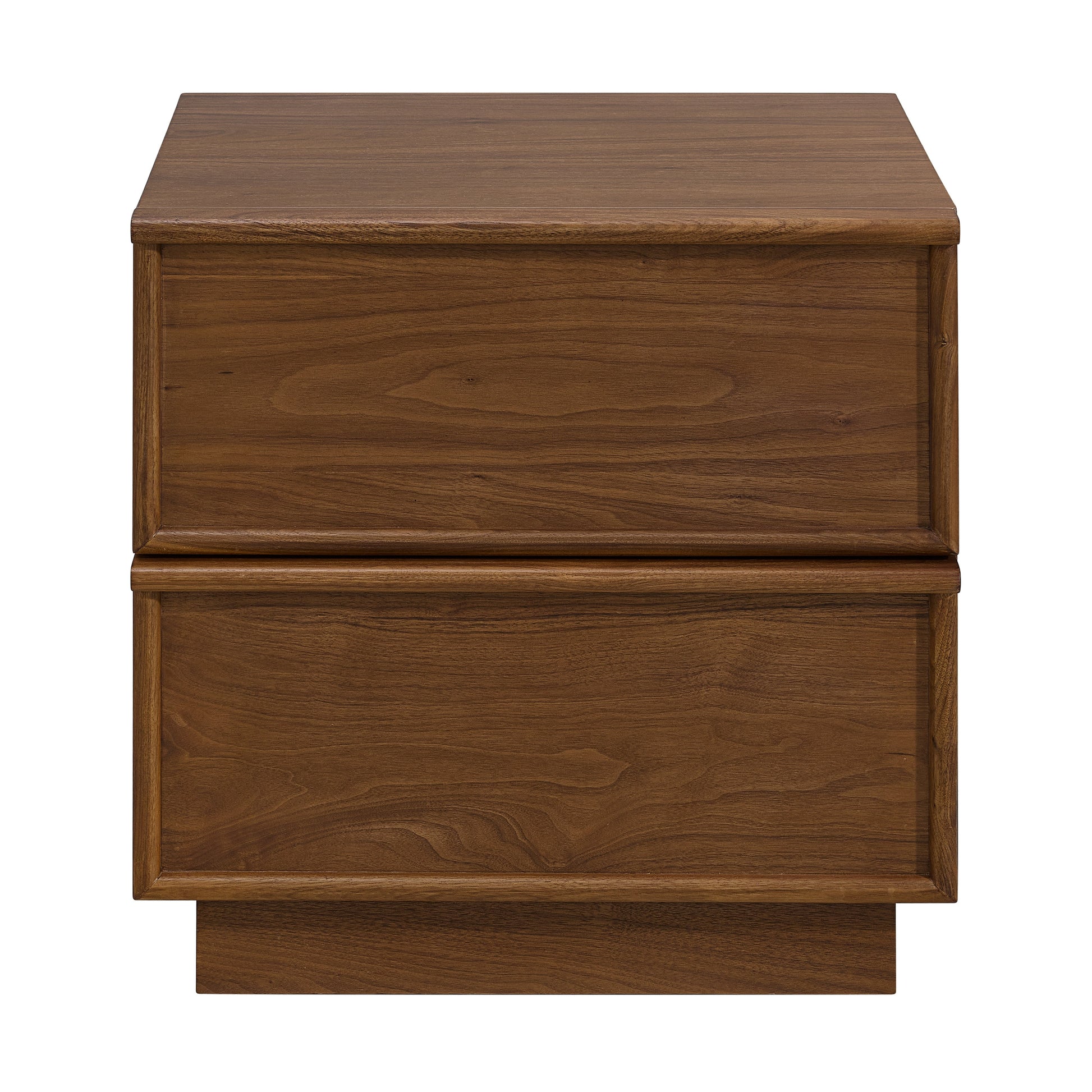 Our Mid-Century Modern nightstand is a perfect blend of style and functionality. Crafted from a solid wood frame construction and walnut solid wood trim and veneer, this elegant piece brings a touch of timeless sophistication to your bedroom. Designed with clean lines and a minimalist aesthetic, it effortlessly complements any décor while providing ample storage for your nighttime essentials. Comes fully assembled.