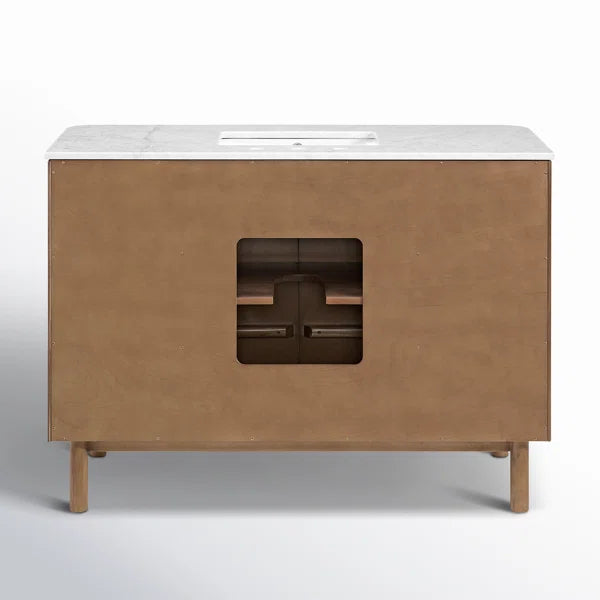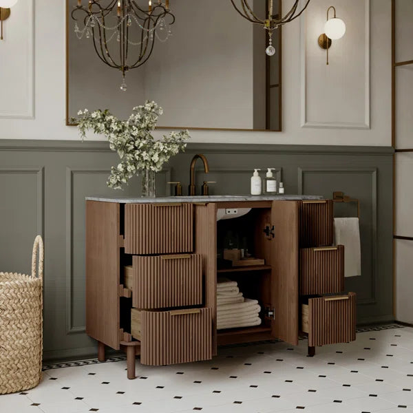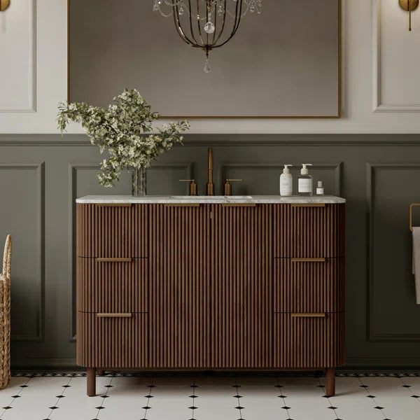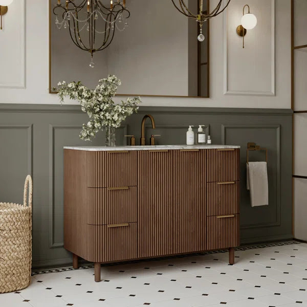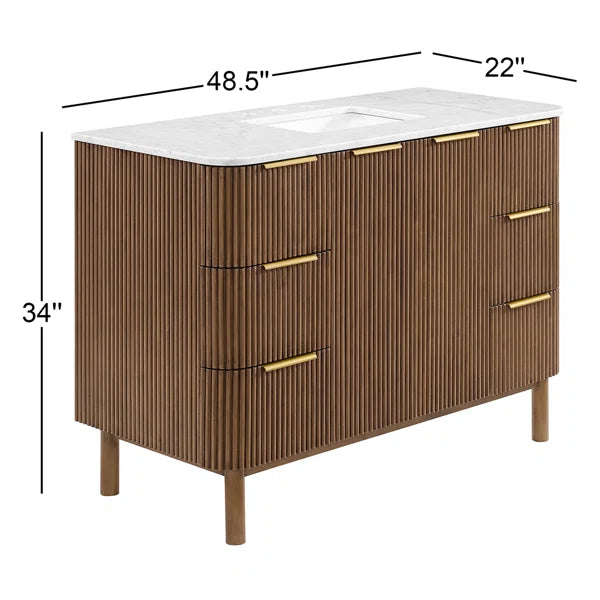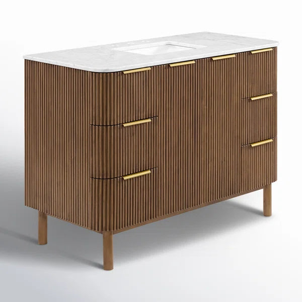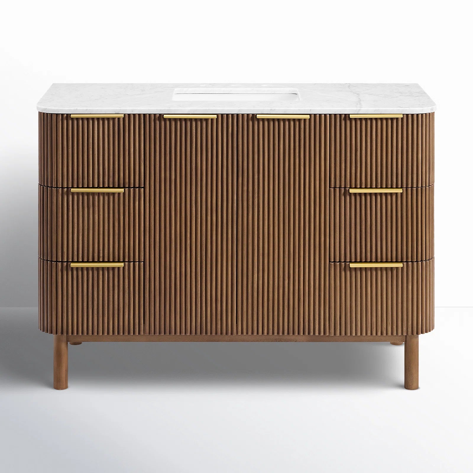 Havana 48" Brown Reeded Birch Single Bathroom Vanity | Carrara Marble Countertop