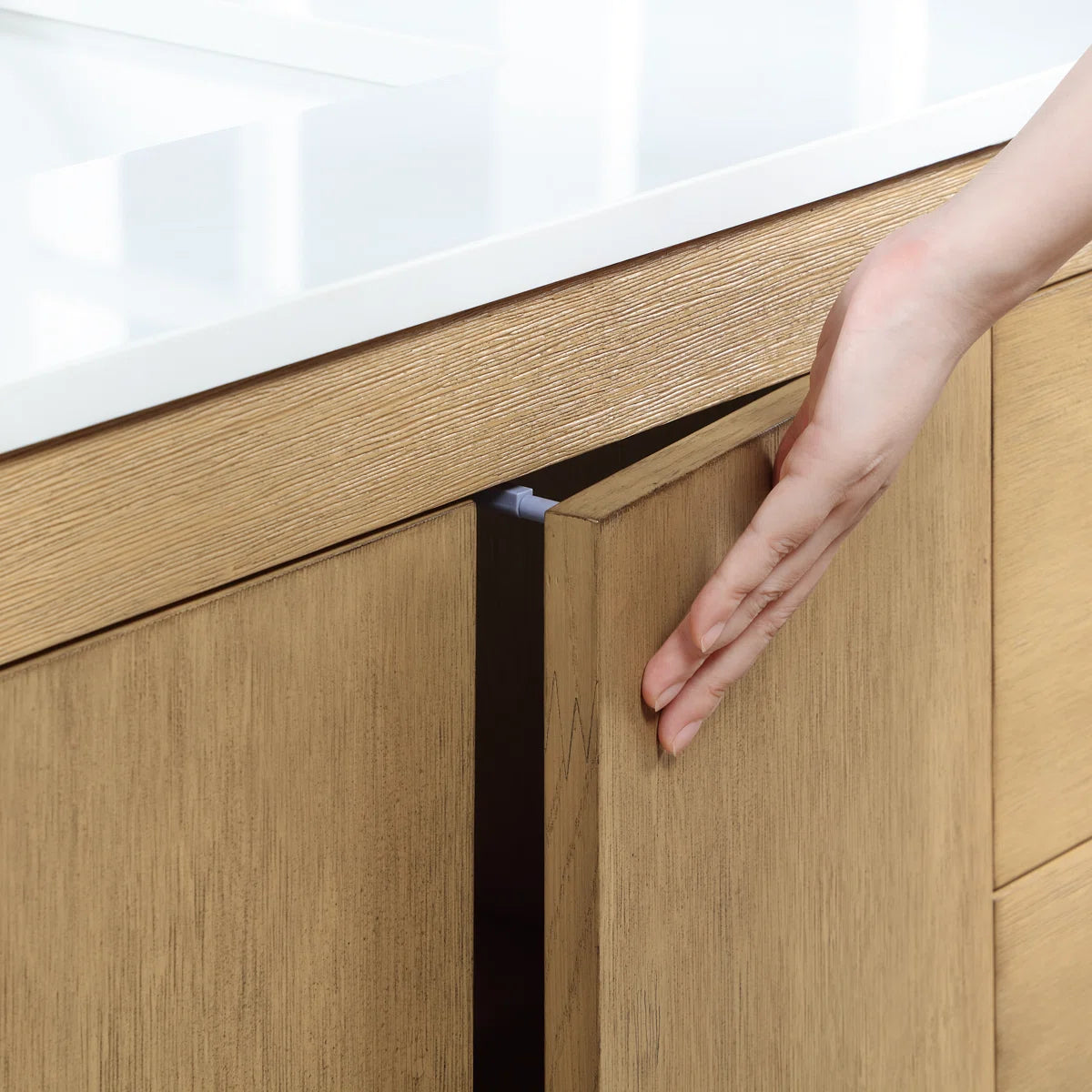 Indulge in luxury with this 60" bathroom vanity, the perfect addition to your modern and minimalist bathroom design. Crafted with a solid wood frame and wire-brushed oak veneers, this vanity boasts durability and timeless style. The minimalist push-to-open drawers offer a sleek and seamless appearance while providing ample storage for all your bathroom essentials. The drawers are designed to effortlessly glide open with a simple push, making it easy to access your belongings. Topping off this luxurious vanity is a beautiful pure white quartz top, offering a sleek and modern alternative to the classic Carrara marble. Quartz is a non-porous, durable, and low-maintenance material that is resistant to scratches, stains, and bacteria, making it an ideal choice for bathroom vanities.