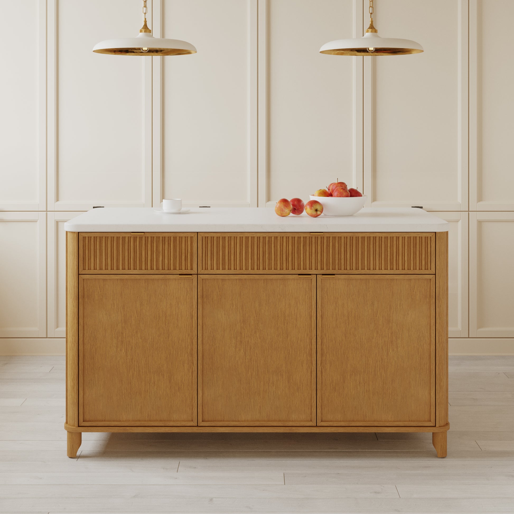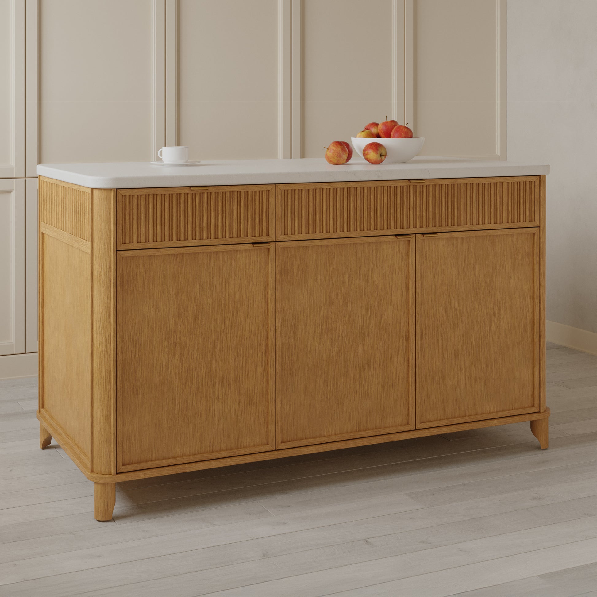 Kathryne 60" Kitchen Island in Oak | Quartz Countertop