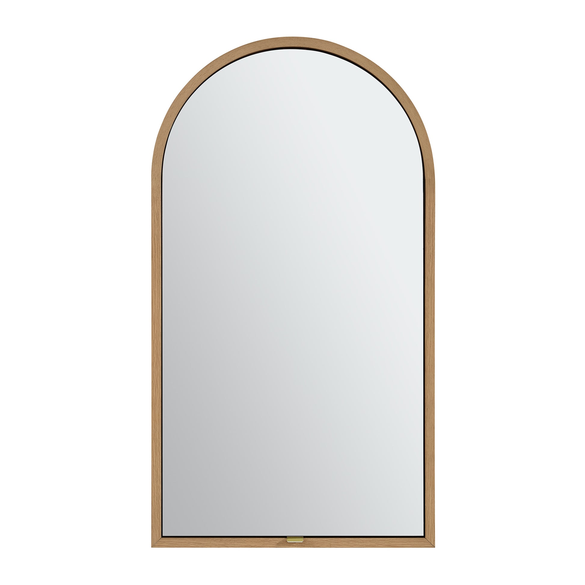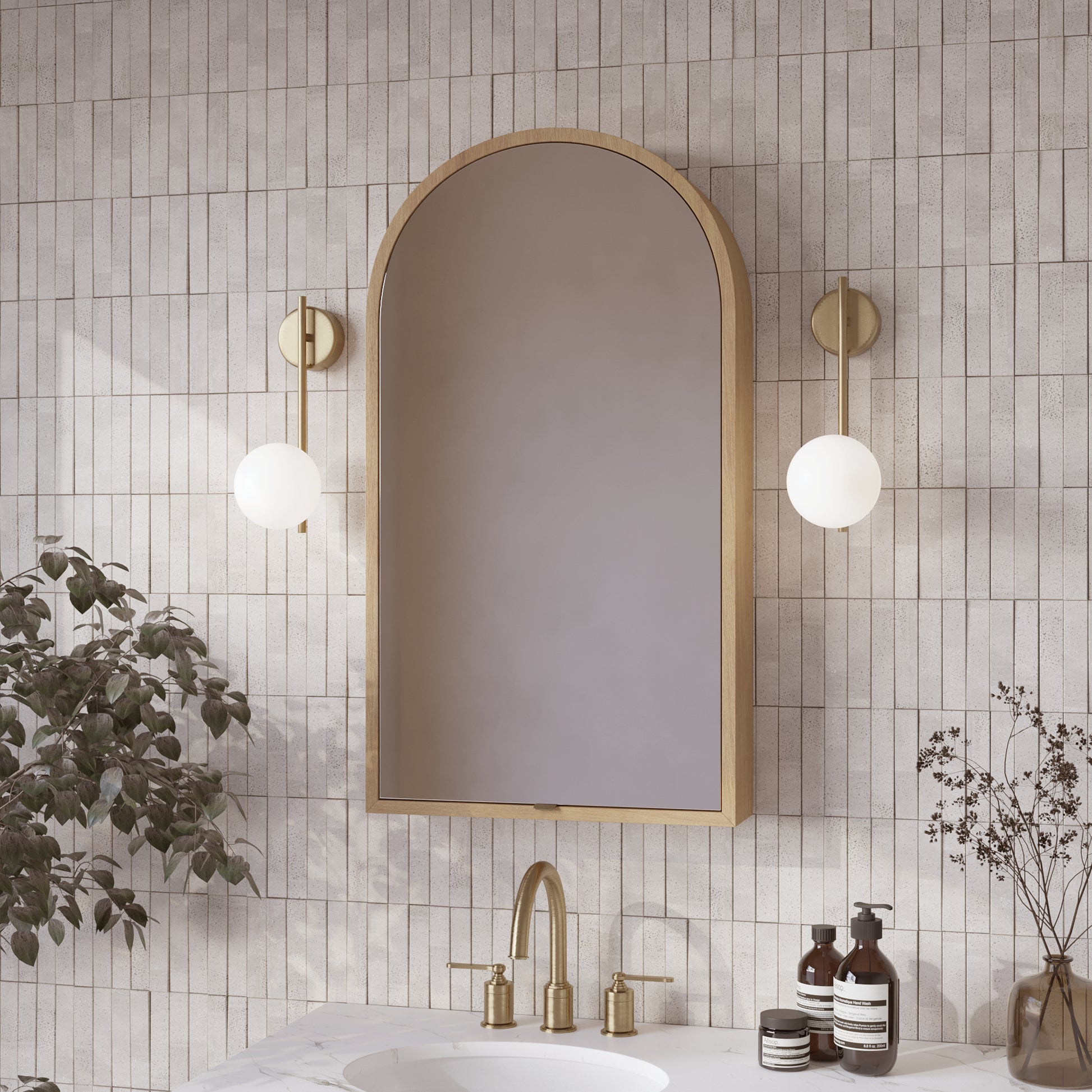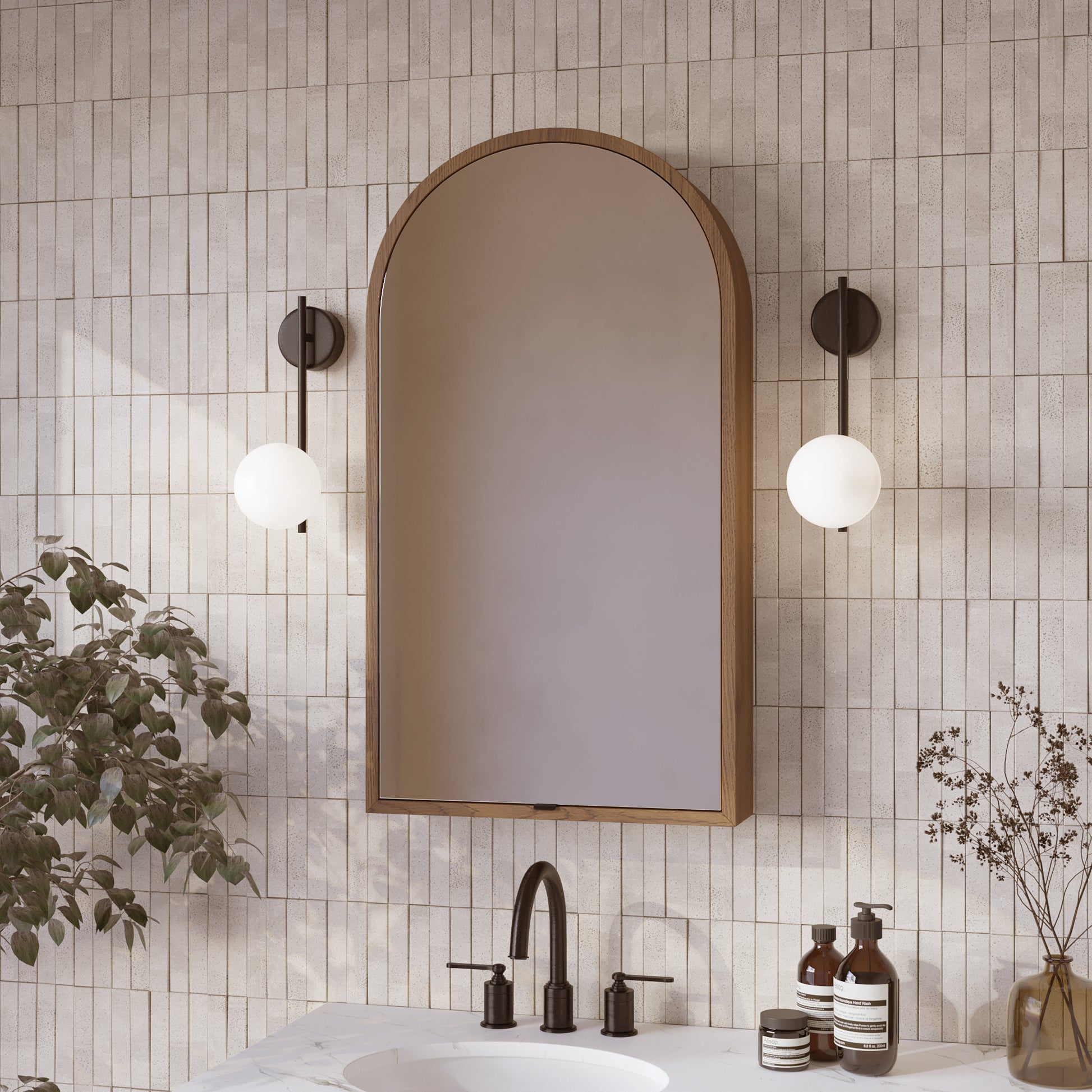 Add a touch of timeless elegance and functional storage to your bathroom with the Midland Arched Medicine Cabinet. The unique bent wood arch and premium hardwood veneer create a soft, sophisticated look. The easy-to-install French cleat system makes for a hassle-free setup, while two adjustable shelves provide customizable storage for everything from tall lotion bottles to small cosmetics. Choose your perfect finish: Natural Walnut for rich, warm tones or Natural Oak for a light, modern look. The cabinet comes with your choice of matte black, satin nickel, or gold door pulls to match your bathroom hardware.
