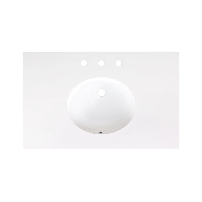 The pure white quartz countertop features a sleek oval undermount ceramic sink for a clean, seamless finish. Three soft-close drawers with durable dovetail construction offer smooth function and ample storage for your everyday essentials.