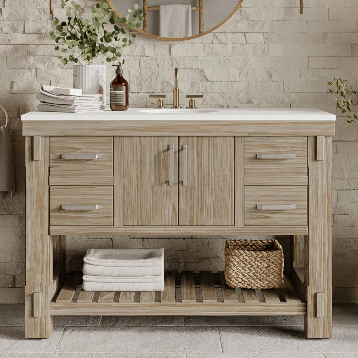 Telluride 48" Single Sink Bathroom Vanity in Washed Pine | White Quartz Countertop