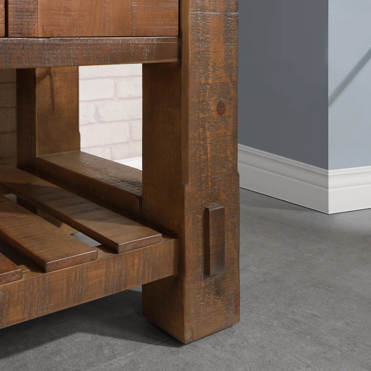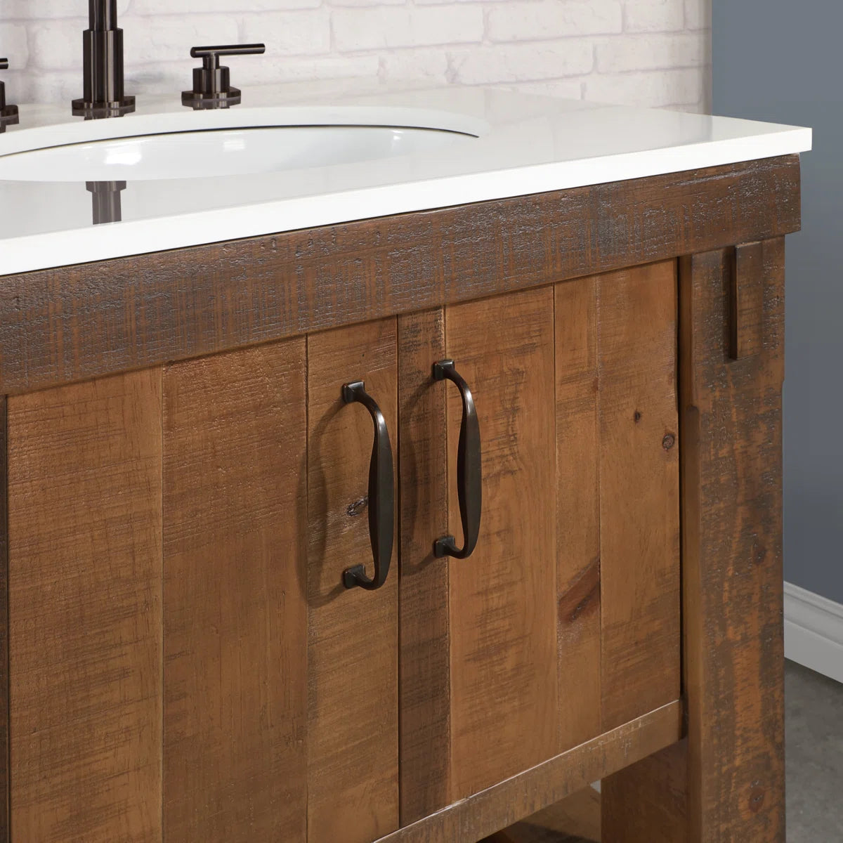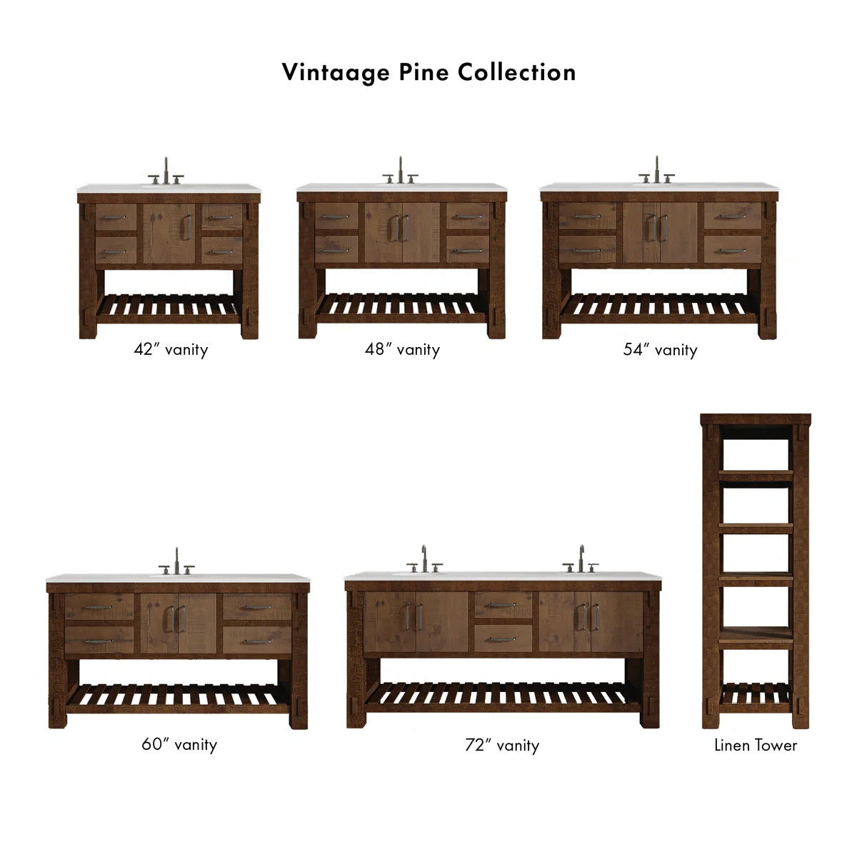 Transform your bathroom with the Bromley farmhouse vanity, featuring a hand-distressed solid pine frame with a rich brown, subtle two-tone wood finish and a pristine white quartz countertop with matte finish. This premium bathroom vanity combines rustic charm with modern conveniences, built with time-honored materials, construction, and quality. Ample storage is provided by soft-close, under-mount drawers crafted with dovetail joinery, plus open bottom storage perfect for displaying luxury linens and decorative baskets. The hand-finished details and authentic farmhouse styling bring timeless charm to any bathroom while offering the durability and functionality of contemporary design. Experience farmhouse charm with modern conveniences in this expertly crafted vanity that will last for years to come.